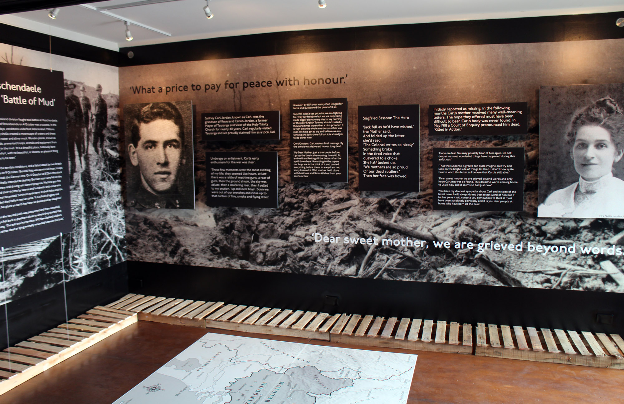 Four Tauranga men died during the bloodiest period of Passchendaele - Albert Wasley, Sydney Carl Jordan, William Cunningham and Cecil Guinness. I Died in Hell tells the story of Carl Jordan through his own words and those of his friends. The exhibition included excerpts from letters written by Carl and his friends and gave attendees an insight into what these men experienced and endured during the battle. The exhibition also featured film footage from the front.