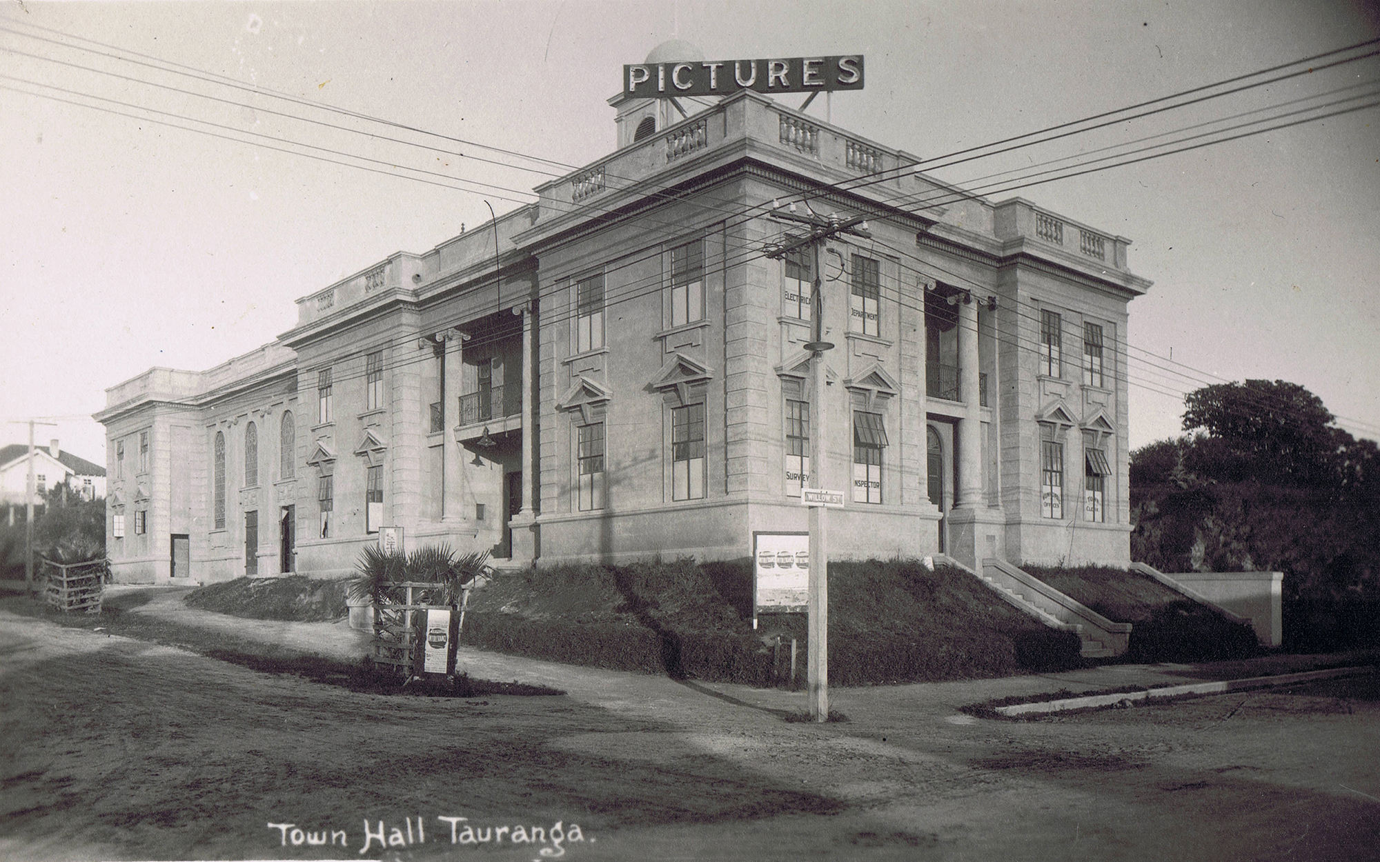 With the construction of the Town Hall in 1916, the Tauranga Borough Council became proprietors of a theatre. The Town Hall promised residents a better class of entertainment and before any film was shown Councillors checked its quality and suitability. No doubt this was a reaction to the Cinematograph Film Censorship Act which was passed the same year. In December 1929 the Regent Theatre opened in Spring Street. It was operated by Robert Kerridge, as was the Town Hall by this stage.